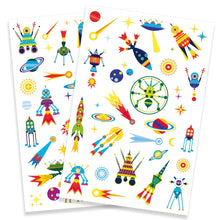 The Space Oddity tattoo pack contains 2 sheets of fun designed, glow in the dark tattoos that will appeal to young children, especially with the bright classic colours.