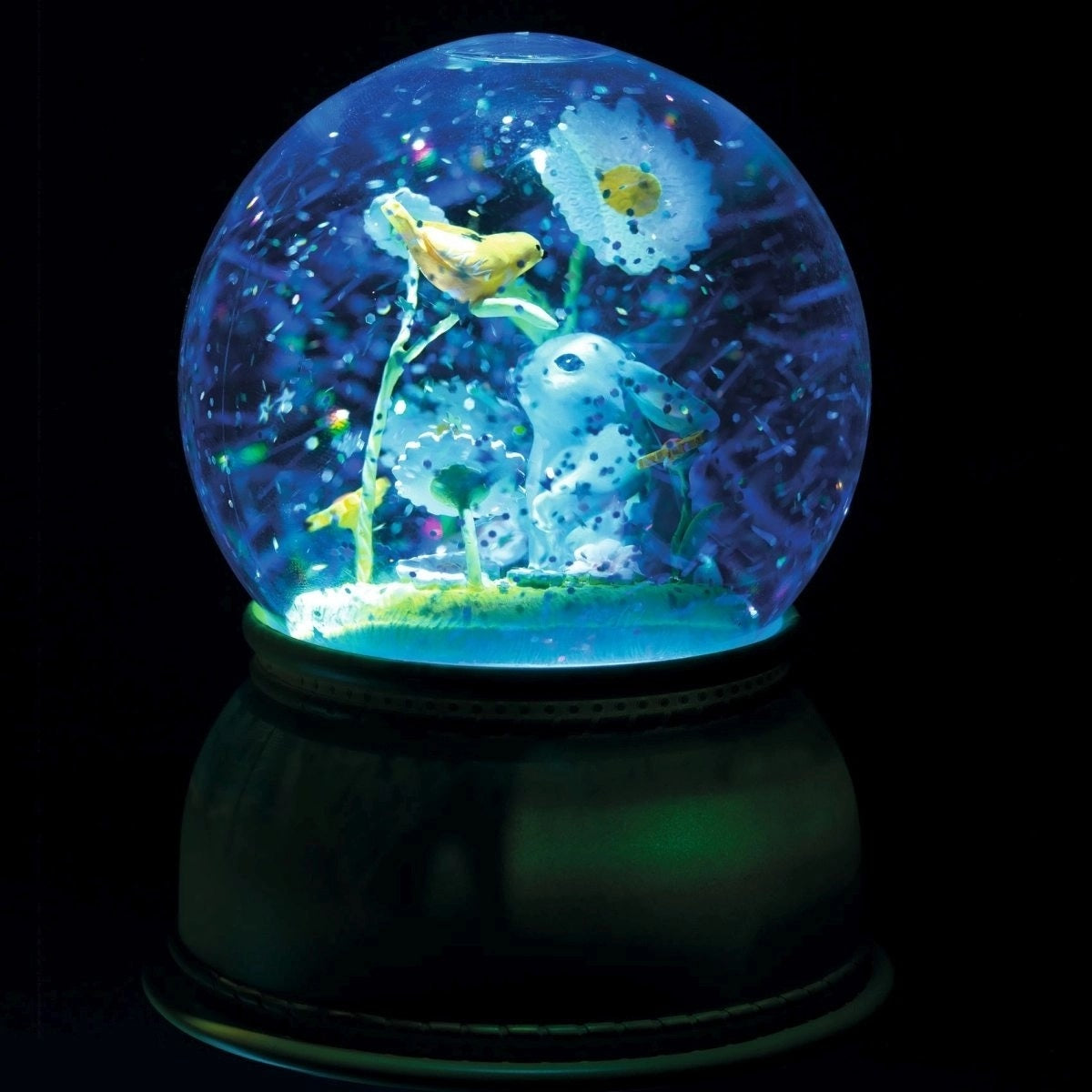 A sparkling snow globe nightlight with a beautiful rabbit.